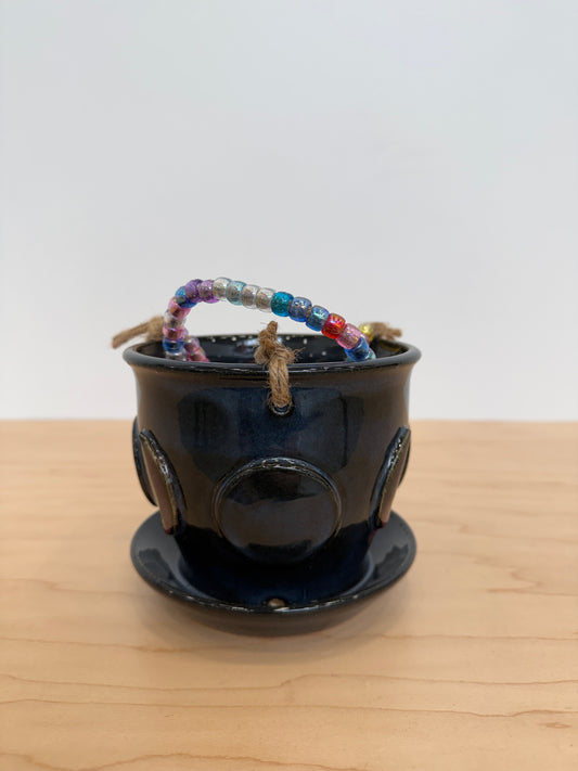 It’s Not Just a (Moon) Phase, Mom: Beaded Hanging Planter - dark clay body